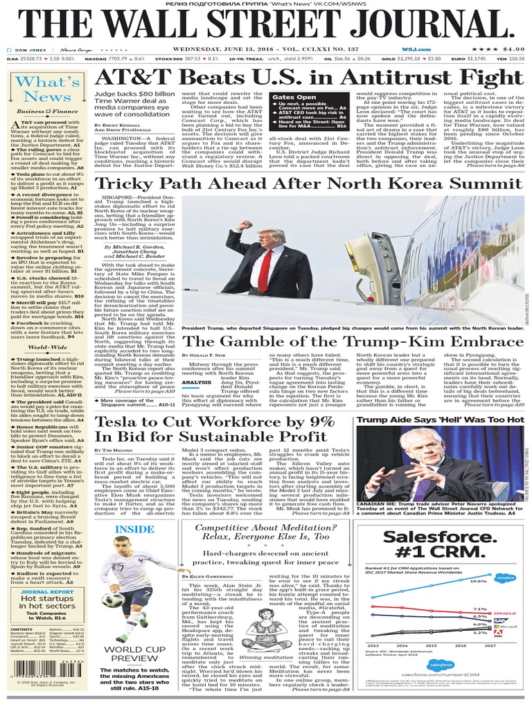 The Wall Street Journal 13 06 2018 Pdf European Central Bank Central Banks